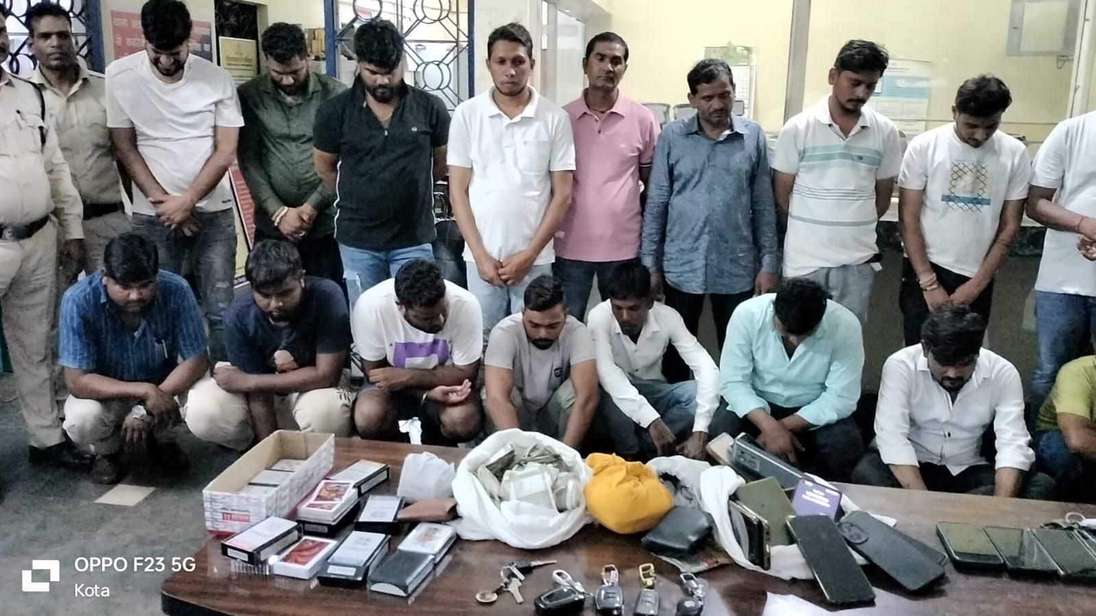 बिलासपुर। सूचना प्राप्त हुई कि कोरी डैम के किनारे कई फड लगाकर लोग लाखों रुपयों का जुआ खेल रहे है । इस सूचना पर तत्काल SDOP Kota नूपुर उपाध्याय को थाना प्रभारी कोटा के साथ पर्याप्त बल के साथ भेजा गया । पुलिस बल के पहुँचने पर जुआड़ियों के 4 फड़ लगे थे पुलिस को देखकर जुआड़ियों ने भागने का प्रयास किया किंतु पुलिस पार्टी ने घेराबंदी कर जुआरियों को पकड़ा और डैम के पास बने सिंचाई विभाग की बिल्डिंग के बाउंड्री में लाकर पुलिस के द्वारा zero FIR की गयी और सभी फड़ों की तलाशी ली गयी जिसमें ताश के पत्तों के अलावा कुल रक़म 349215 रुपये बरामद हुए हैं तथा कुल 22 जुआड़ी पकड़े गये जिनके नाम इसप्रकार हैं । जुआरियों से 7 कारें और 22 मोबाइल ज़ब्त किए गए हैं ।