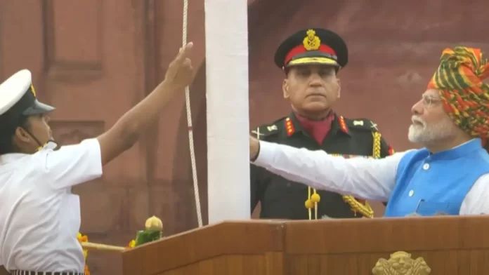 इस मौके पर पीएम मोदी ने देशवासियों को शुभकामनाएं दी हैं। प्रधानमंत्री नरेंद्र मोदी ने लगातार 11वीं बार दिल्ली के लाल किले पर पहुंचकर तिरंगा झंडा फहराया। इस दौरान लाल किले की प्राचीर से उन्होंने हाथ हिलाकर वहां मौजूद लोगों का अभिनंदन किया। ‘भारत माता की जय’ के साथ पीएम मोदी ने लाल किले की प्राचीर से अपने संबोधन की शुरुआत की। उन्होंने कहा कि जन-जन की सेवा करना हमारा संकल्प है। जन जन की सेवा से विकसित भारत बनाएंगे। हमने देश को नया आत्मविश्वास दिया। अगली पीढ़ी पर काम नहीं टाल सकते। आज आजादी के दीवानों को नमन करने का दिन है। स्वतंत्रता सेनानियों का तहे दिल से नमन है। पीएम मोदी ने लाल किले से संबोधन में क्या कहा