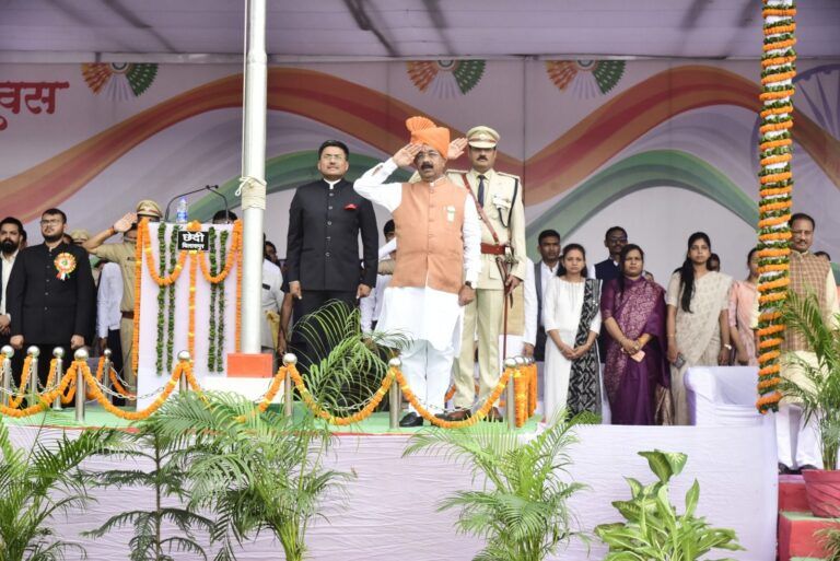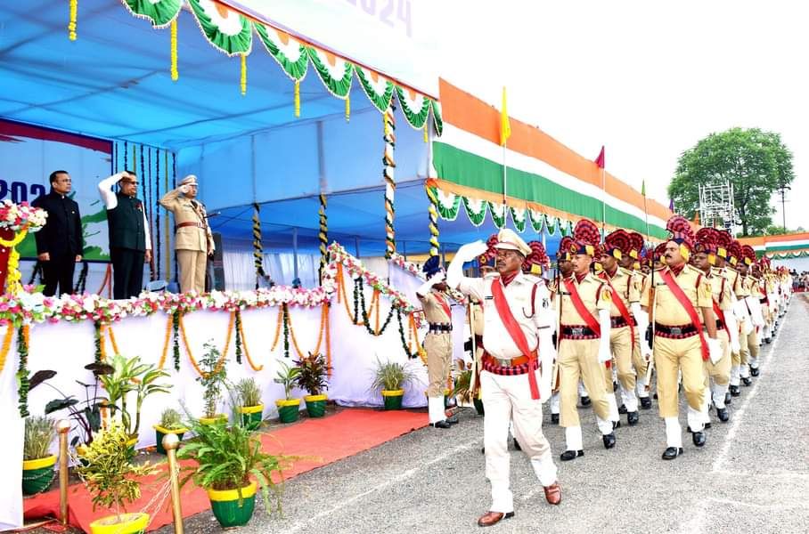 बिलासपुर। आजादी का 78वां पर्व जिले में रिमझिम फुहारों के बीच गरिमामय माहौल में उत्साहपूर्वक मनाया गया। मुख्य समारोह पुलिस ग्राउंड में आयोजित किया गया। उप मुख्यमंत्री अरूण साव ने ध्वजारोहण किया। ध्वजारोहण पश्चात राष्ट्रगान की धुन पर सलामी दी गई। दर्शक अपने स्थान पर खड़े हुए तथा वर्दीधारी अधिकारियों ने सेल्यूट किया। उपमुख्यमंत्री साव ने शांति के प्रतीक सफेद कबूतर उड़ाए और हर्षोल्लास और उमंग के प्रतीक तिरंगे गुब्बारे आकाश में छोड़े। पूरे परिधान में सजे हुए 12 प्लाटूनों ने भव्य एवं आकर्षक परेड का प्रदर्शन किया।