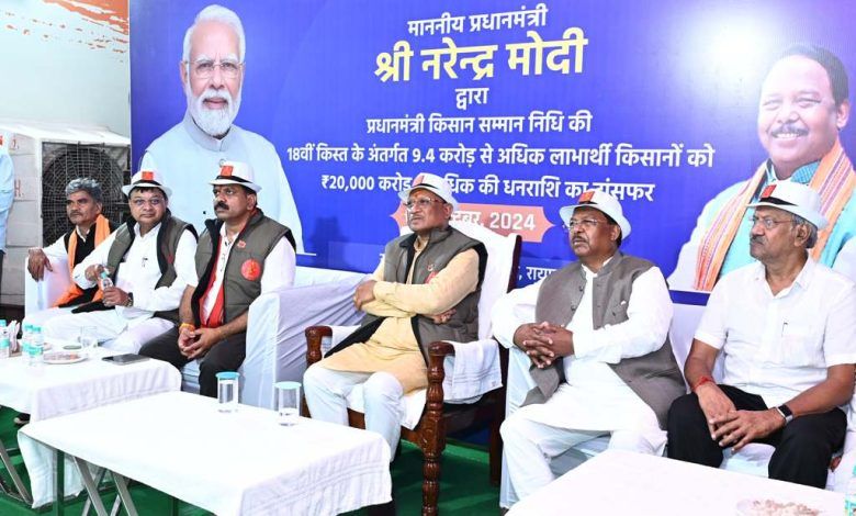 रायपुर । प्रधानमंत्री मोदी ने शनिवार को महाराष्ट्र के वाशिम जिले से देश के लगभग 9 करोड़ 40 लाख से अधिक किसानों को प्रधानमंत्री किसान सम्मान निधि की 18वीं किस्त के रूप में 20 हजार करोड़ रुपए से अधिक की राशि सीधे उनके खाते में अंतरित की।
