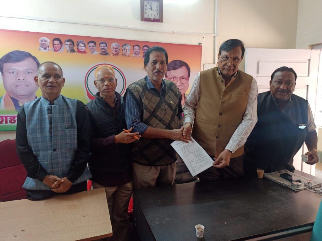वार्ड नंबर 32 शहीद विनोद चौबे नगर से झुग्गी झोपड़ी संगठन के उपाध्यक्ष हरमेंद्र शुक्ला ने पार्षद प्रत्याशी हेतु कांग्रेस भवन में जमा किया आवेदन