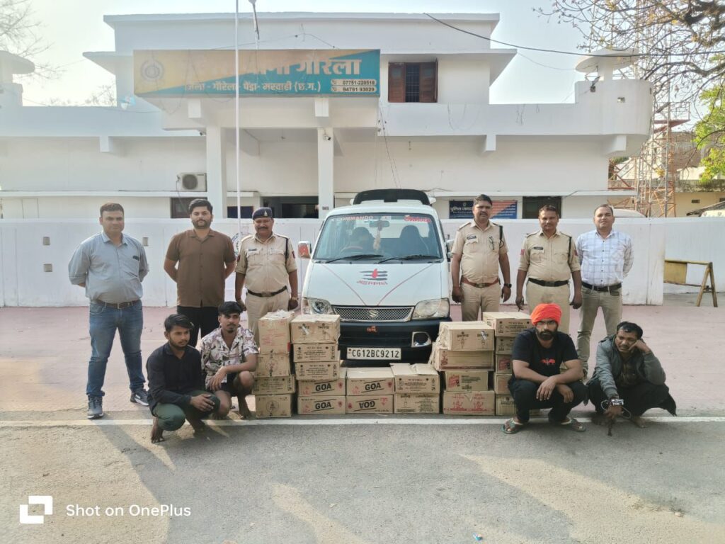 गौरेला-पेंड्रा-मरवाही पुलिस ने एसपी आईपीएस भावना गुप्ता के निर्देशन एवं अतिरिक्त पुलिस अधीक्षक ओम चंदेल और डीएसपी साइबर सेल दीपक मिश्रा की मॉनिटरिंग में अवैध शराब तस्करी के खिलाफ बड़ी कार्रवाई की है। इस संयुक्त अभियान में साइबर सेल जीपीएम और थाना गौरेला पुलिस ने मध्यप्रदेश से तस्करी कर लाई जा रही 187 लीटर अंग्रेजी शराब जब्त कर चार आरोपियों को गिरफ्तार किया है। गिरफ्तार आरोपियों में मिलेनियम ढाबा संचालक भी शामिल है।
