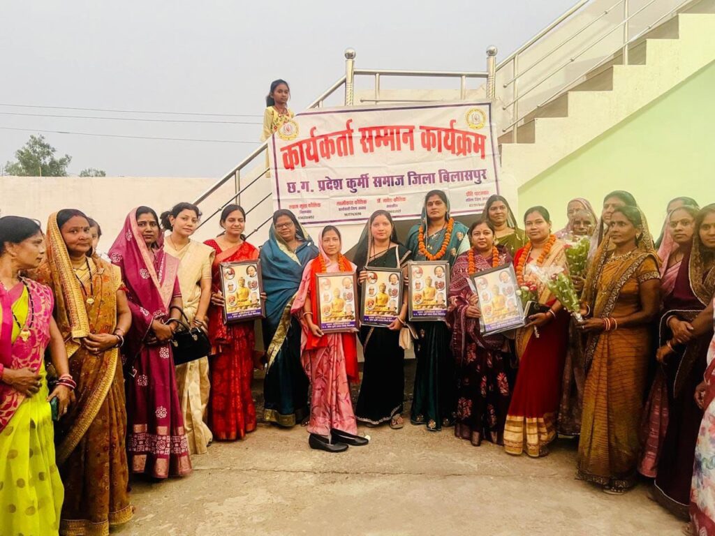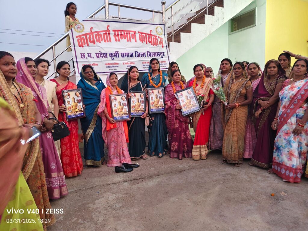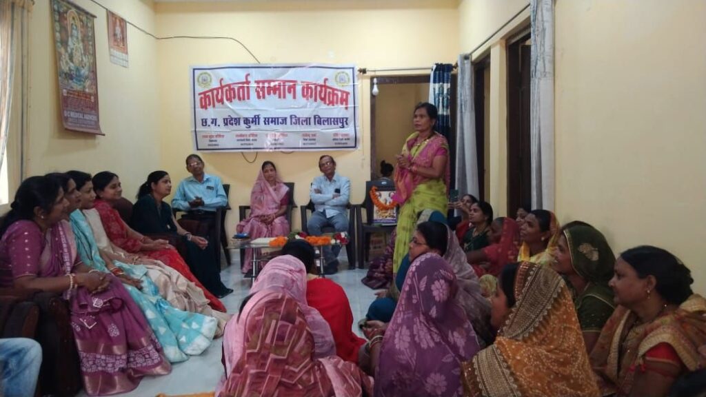 छत्तीसगढ़ प्रदेश कुर्मी समाज बिलासपुर के द्वारा तखतपुर में महिला कुर्मी समाज की बैठक एवं सम्मान समारोह में जिला पंचायत उपाध्यक्ष सहित नारी शक्तियों का सम्मान किया गय कार्यक्रम के मुख्यातिथि श्रीमती ललिता संतोष कश्यप जिला पंचायत उपाध्यक्ष अध्यक्षता श्रीमती प्रीति पाटनवार महिला जिलाध्यक्ष एवं विशिष्ट अतिथि श्याम मूरत कौशिक जिलाध्यक्ष, बी आर सिंगरौल संरक्षक, लक्ष्मी कांत कौशिक कार्यकारी अध्यक्ष, पदुम पाटनवार संरक्षक,ज्योति सिंगरौल उपाध्यक्ष अन्नपूर्णा कश्यप कोषाध्यक्ष, हेमंत कश्यप ब्लॉक अध्यक्ष तखतपुर एवं डा वर्षा कौशिक ब्लॉक अध्यक्ष महिला कुर्मी समाज तखतपुर के साथ सभी गणमान्य समाजगढ़ मौजूद था