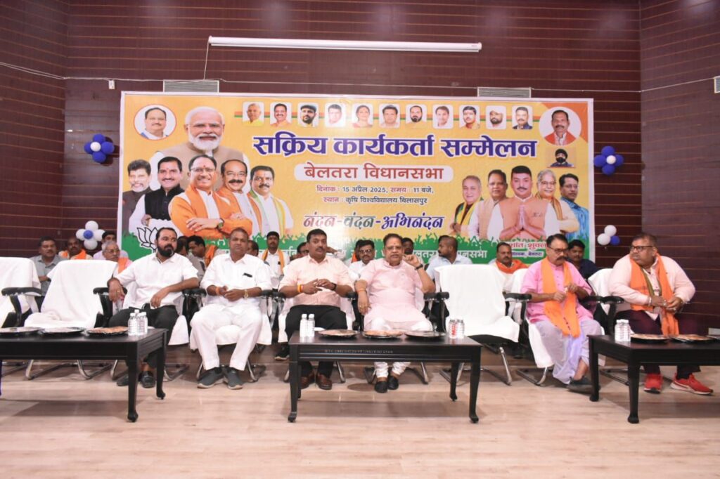 बेलतरा विधानसभा में भाजपा के सक्रिय सदस्यों का सम्मेलन आयोजित की गई पार्टी के निर्देशानुसार भाजपा के स्थापना दिवस पखवाड़े कार्यक्रम के अंतर्गत सभी विधानसभा में भाजपा के सक्रिय सदस्यों का सम्मेलन कर कर उन्हें पार्टी के रीति नीति से अवगत कराना एवं जनसंघ से लेकर आज तक भाजपा के विकास और इतिहास की जानकारियां दी जा रही है इसके साथ ही भारतीय जनता पार्टी के कार्यकर्ताओं को केंद्र सरकार एवं राज्य सरकारों द्वारा संचालित विभिन्न जनकल्याणकारी योजनाओं के वजह से समाज में हो रहे सामाजिक आर्थिक और राजनीतिक परिवर्तन से कार्यकर्ताओं को अवगत कराने की योजना है कोनी स्थित कृषि विश्वविद्यालय सभागार में आयोजित इस सम्मेलन में बिल्हा विधायक धरमलाल कौशिक बिलासपुर विधायक अमर अग्रवाल जिलाध्यक्ष मोहित जायसवाल दीपक सिंह शामिल हुए कार्यक्रम के उद्घाटन सत्र में विशिष्ट अतिथियों द्वारा भारत माता, छत्तीसगढ़ महतारी और भाजपा के प्रेरणा पुरुष डॉ श्यामा प्रसाद मुखर्जी पंडित दीनदयाल उपाध्याय जी की प्रतिमा पर दीप प्रज्वलित कर पुष्पांजलि अर्पित की गई