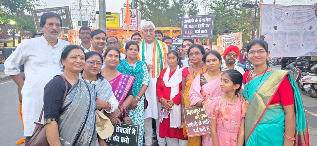 ज़िला कांग्रेस कमेटी द्वारा शुक्रवार को अपोलो हॉस्पिटल चौक से निकल गई  स्वास्थ्य न्याय यात्रा है, यह यात्रा अपोलो चौक से प्रारम्भ होकर चिंगराजपारा भारत माता चौक, अमरैया चौक ,रामायण चौक,मेला चौक जबड़ापारा , पुराना पूल, देवकीनन्दन चौक ,चाँटापारा होते हुए नेहरू चौक पहुंचा, नेहरू चौक में एक आम सभा के साथ स्वास्थ्य न्याय यात्रा सम्पन्न हुई।इस यात्रा में स्वास्थ्य न्याय यात्रा में कांग्रेस ने आरोप लगाया कि अपोलो हॉस्पिटल प्रबंधन ने जानबूझ कर बिना डिग्री धारी फर्जी डॉक्टर नरेंद्र विक्रमादित्य यादव उर्फ नरेंद्र जान केम की नियुक्ति बिलासपुर के अपोलो में किया , अपोलो जो कि प्रदेश के बड़े अस्पतालों में से एक अपोलो को माना जाता है। यहां उपचार के लिए न सिर्फ बिलासपुर संभाग से बल्कि अन्य संभाग से भी लोग पहुंचते हैं।