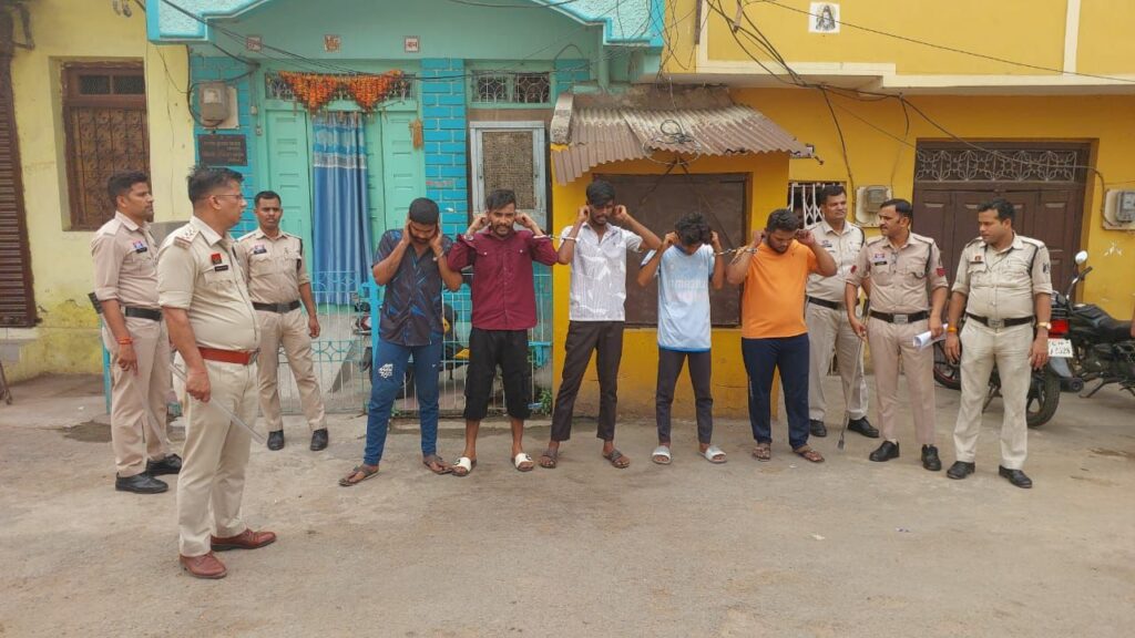 मामले का संक्षिप्त विवरण इस प्रकार है कि थाना सिटी कोतवाली में अशोक गुप्ता ने रिपोर्ट रिपोर्ट दर्ज कराया दिनांक 23/5/2025 को उसका लड़का शेखर गुप्ता रात करीबन 10/30 बजे ऑफिस से अपने घर कतिया पारा वापस आया तो उसके घर के सामने कुछ लड़के खड़े थे। गाड़ी को किनारे करने को बोला तो उसी बात को लेकर. राहुल सिह, मिथिलेश सिह और शुभम ने शेखर गुप्ता से गाली गलौच करके चले गए। थोड़ी देर बाद राहुल, मिथिलेश, शुभम अपने अन्य साथियो के साथ हाथ में डंडा लाठी लेकर आए और उसके घर अंदर घुस गए। आरोपियों ने अश्लील गाली-गलौज कर जान से मारने की धमकी देते हुए लाठी, डण्डा, हाथ मुक्का से मारपीट करने लगे। राहुल सिंह ने चाकू दिखाकर जान से मारने की धमकी दी। आरोपियों के द्वारा घर घुसकर मारपीट करने से अशोक गुप्ता और उसके पुत्र शेखर गुप्ता को चोट आयी है। जिनका सिम्स अस्पताल बिलासपुर में इलाज चल रहा है। रिपोर्ट के बाद थाना सिटी कोतवाली में अपराध धारा 333, 296, 115(2), 351(2), 3(5) bns के तहत अपराध दर्ज कर विवेचना की गयी। प्रकरण की गंभीरता को देखते हुए SSP रजनेश सिंह ने थाना प्रभारी को तत्काल कार्यवाही के निर्देश दिए। अतिरिक्त पुलिस अधीक्षक राजेन्द्र जायसवाल, नगर पुलिस अधीक्षक अक्षय प्रमोद सभद्रा के मार्गदर्शन में आरोपियों की गिरफ्तारी के लिए तत्काल टीम बनाकर आरोपियों के घर पर दबिश दी। आरोपी राहुल, शुभम सोनी, मिथिलेश सिह, रोहन साहू, काव्यांशु विनोदीया को घटना के 2 घण्टे के अंदर पकड कर हिरासत में लिया गया और पूछताछ की गयी। आरोपियों ने अपना जुर्म स्वीकार कर लिया और उनकी निशानदेही पर डण्डा, चाकू एवं अपराध में प्रयुक्त मोटर सायकिल, स्कूटी को जप्त कर लिया गया है। इसके बाद आरोपियों को घटना स्थल पर मुर्गा बनाया गया और कतियापारा, गांधी चौक में जुलूस निकाला गया। आरोपियों को गिरफ्तार कर न्यायिक रिमांड के लिए भेजा गया है। प्रकरण के अन्य फरार आरोपियों का पता तलास किया जा रहा है।