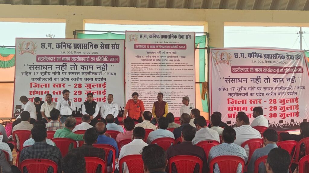 छत्तीसगढ़ में प्रशासनिक व्यवस्था को लेकर बड़ा अब डेट देखने को मिल रहा है। छत्तीसगढ़ कनिष्ठ प्रशासनिक सेवा संघ ने प्रदेश सरकार के उदासीन रवैये के खिलाफ निर्णायक कदम उठाते हुए 31 जुलाई 2025 से अनिश्चितकालीन हड़ताल पर जाने का ऐलान कर दिया है। यह हड़ताल प्रदेश के समस्त तहसीलदार एवं नायब तहसीलदारों द्वारा संभाग मुख्यालयों में धरना-प्रदर्शन के रूप में की जाएगी।संघ ने 17 जुलाई को शासन को 17 सूत्रीय मांगों का ज्ञापन सौंपा था। इन मांगों में प्रशासनिक, तकनीकी व सुरक्षा संसाधनों की उपलब्धता, न्यायिक प्रक्रिया में संरक्षण, कार्य संतुलन, और सेवा शर्तों में सुधार जैसे अहम मुद्दे शामिल हैं। संघ ने चरणबद्ध आंदोलन के तहत 28 जुलाई को जिला स्तर पर, 29 जुलाई को संभाग स्तर पर, 30 जुलाई को राज्य स्तर पर सभी राजस्व अधिकारियों ने सामूहिक अवकाश लेकर शांतिपूर्ण प्रदर्शन किया। लेकिन अत्यंत खेदजनक है कि अब तक शासन की ओर से किसी भी प्रकार की वार्ता या सकारात्मक प्रतिक्रिया नहीं आई है। इसलिये संघ की समस्त जिला कार्यकारिणियों के सामूहिक निर्णय के आधार पर 31 जुलाई से अनिश्चितकालीन हड़ताल शुरू की जा रही है।
