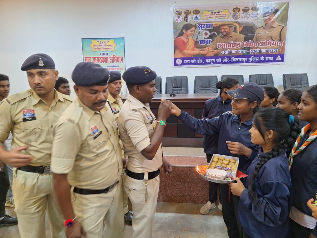 बिलासपुर पुलिस द्वारा रखी के पवित्र पर्व में रक्षा का वादा – सुरक्षा का इरादा, राखी की डोर- क़ानून की ओर थीम पर आयोजित कार्यक्रम में लोग बढ़ चढ़कर शामिल हुए, स्कूल के बच्चे, शहर के स्कूल/ कॉलेज की बच्चियों द्वारा पुलिस अधिकारी कर्मचारी को राखी बाँधकर एक अटूट रिश्ता बनाया जो बिलासपुर पुलिस और बिलासपुर के लोगों के बीच सुरक्षा और शांति कायम है, लोगों का विशेष कर महिला बच्चियों का इस तरह पुलिस से जुड़ना एक अलग ही संदेश और अनुभव है जो आपराधिक गतिविधियों, आपराधिक प्रवृत्ति और आपराधिक घटनाओं को रोकने में सहायक साबित होगी ।