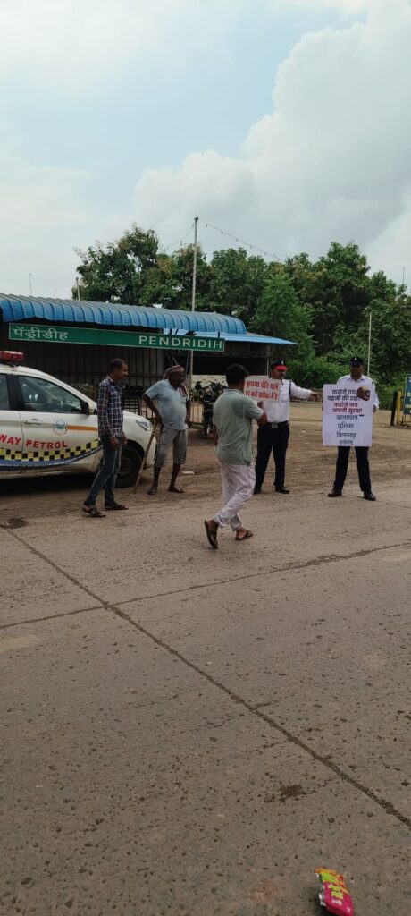 इस क्रम में आज तीज पर्व को दृष्टिगत रखते हुए नेशनल हाईवे के समस्त क्षेत्र में नियमित रूप से पेट्रोलिंग कर तीजा पर्व के लिए मायके जाने वाली माताओ, बहनों, परिवार के अन्य सदस्यों एवं उनके साथ जाने वाहन चलाने वाले वाहन चालक को यातायात नियमो के प्रति संवेदनशील एवं सदैव नियम अनुसार सड़कों पर चलने हेतु अपील किया गया। सड़कों पर चलने वाले समस्त राहगीरों एवं वाहन चालकों को किसी भी स्थिति में शराब सेवन कर वाहन चालन, अत्यधिक तेज गति से वाहन चालन, बिना हेलमेट, बिना सीट बेल्ट, रांग साइड वाहन चालन, माल वाहक यान में सवारी बैठाकर वाहन चालन एवं दुपहिया वाहन में ट्रिपल सवारी एवं अन्य यातायात नियमों का उल्लंघन नही करने हेतु अपील की गई।