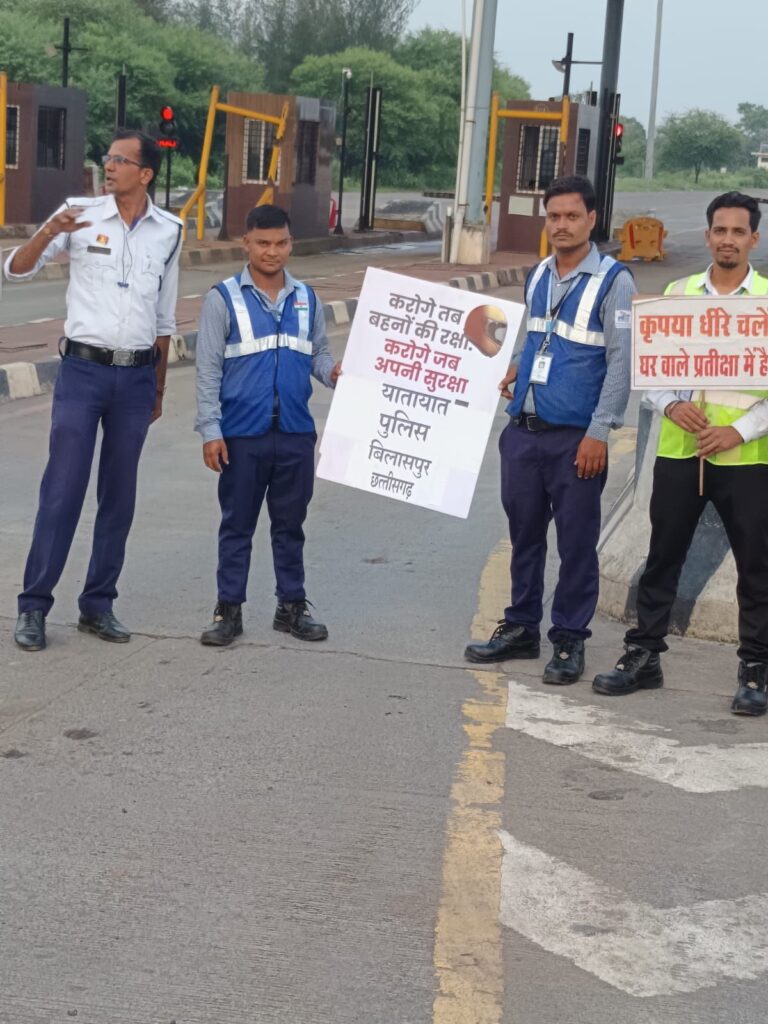 इस हेतु यातायात पुलिस अधिकारियों एवं कर्मचारियों ने नेशनल हाईवे मार्ग पर यातायात नियमों की तालिका बनाकर यातायात नियमों के पालन हेतु स्लोगन लिखे हुए फ्लेक्सी, बोर्ड, तख्तियाँ एवं यातायात नियमों के पालन हेतु विभिन्न स्लोगन वाक्य के माध्यम से लगातार आम नागतिको राहगीरों वाहन चालकों को जागरूक की गई है साथ ही राहगीरों को सचेत होकर वाहन चलाने हेतु अनुरोध किया गया है।