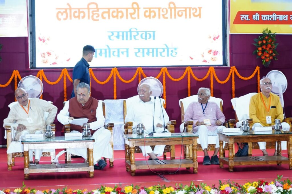 बिलासपुर। सिम्स ऑडिटोरियम में रविवार को राष्ट्रीय स्वयंसेवक संघ के पूर्व संघचालक स्वर्गीय काशीनाथ गोरे की स्मृति में आयोजित स्मारिका विमोचन समारोह संपन्न हुआ। इस अवसर पर संघ प्रमुख डॉ. मोहन भागवत और छत्तीसगढ़ विधानसभा अध्यक्ष डॉ. रमन सिंह मुख्य अतिथि के रूप में उपस्थित रहे। कार्यक्रम की शुरुआत भारत माता की प्रतिमा पर पुष्प अर्पण और नमन से हुई। श्रद्धांजलि व्यक्त करते हुए डॉ. रमन सिंह ने अपने डॉक्टर रहने के समय का एक किस्सा साझा किया। उन्होंने बताया कि काशीनाथ गोरे उन्हें एक बार देवार मोहल्ले ले गए थे। वहां की बच्चियों द्वारा पैर पखार कर सम्मान दिए जाने का अनुभव उनके जीवन का अहम मोड़ साबित हुआ, जिसके बाद लोग उन्हें मजाकिया लहजे में शनिचर डॉक्टर कहने लगे।