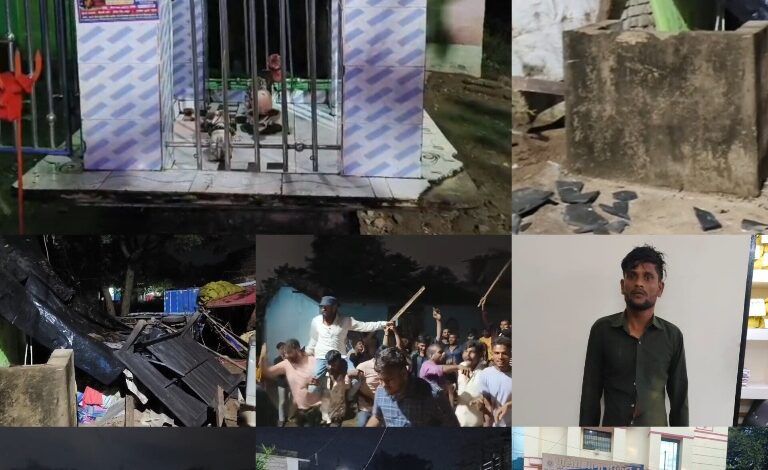 बिलासपुर– बिलासपुर से एक बड़ी खबर निकलकर सामने आ रही है। जहां पर सरकंडा थाना क्षेत्र में शुक्रवार को बड़े विवाद को जन्म दिया।बताया जा रहा कि एक मुस्लिम युवक द्वारा शिव मंदिर में पेशाब करने की घटना को अंजाम दिया। स्थानीय निवासियों से मिली जानकारी के अनुसार युवक ने सीधे शिवलिंग पर पेशाब करते हुए मंदिर को अपवित्र कर दिया जिसे स्थानीय लोगों ने अपनी आंखों से देखा। इस हरकत के बाद क्षेत्र में भारी आक्रोश फैल गया और लोगों का गुस्सा भड़क उठा,और देखते ही देखते भारी संख्या में हिन्दू संगठन के लोग इकट्ठा हो गए। गुस्साई भीड़ ने आरोपी के खिलाफ नारेबाजी करते हुए बस्ती के दो घरों में जमकर तोड़फोड़ की। अफरातफरी के बीच आरोपी युवक वहां से भागने की फिराक में था, लेकिन स्थानीय लोगों की सूचना पर पुलिस तुरंत मौके पर पहुंची और उसे पकड़ लिया। गिरफ्तार युवक की पहचान 23 वर्षीय अशरफ खान के रूप में हुई है।