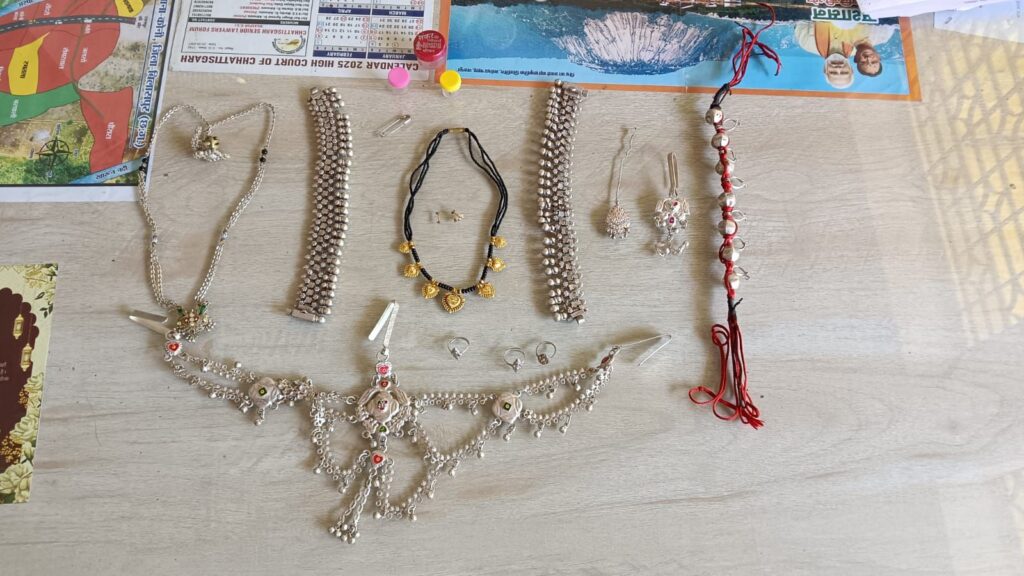दिनांक 05.10.2025 को थाना कोनी में करहीपारा ,निरतु निवासी राजेन्द्र सूर्यवंशी अपनी पत्नी व बच्चों के साथ ससुराल गया हुआ था। दिनांक 07-10-25 कोवाप्स उसने पर देखा कि अलमारी में रखा हुआ चांदी का पायल,मंगलसूत्र, फुल्ली,चाबी गुच्छा, बिछिया कीमत लगभग 50हजार रुपये कोई चोर चोरी करके ले गया है।