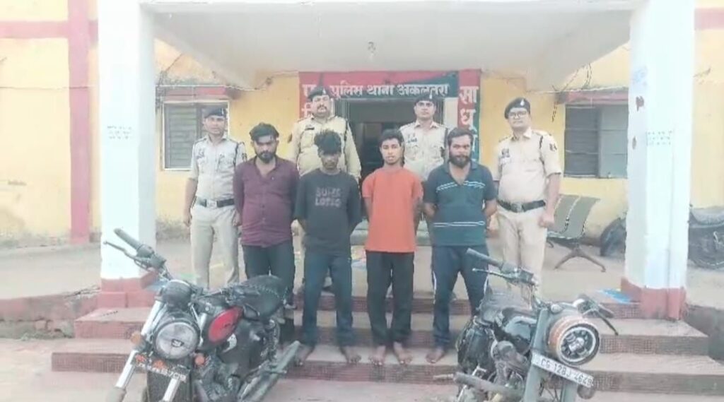 जांजगीर चांपा । अकलतरा पुलिस और साइबर टीम ने किया है। 21 अक्टूबर को मृतक बालमुकुंद सोनी का घर में खून से लथपथ शव मिला था। पुलिस ने त्वरित जांच के बाद घटना में शामिल चार आरोपियों और दो नाबालिगों को कुछ ही घंटों में गिरफ्तार कर लिया। जांच में पता चला कि पुरानी रंजिश और पंचायत चुनाव के दौरान विवाद के कारण आरोपियों ने योजना बनाकर हत्या की। आरोपियों में रोशन दास मानिकपुरी, सौरभ पाठक, चंद्रहास पांडे, शिवांश पांडे शामिल हैं। घटना की रात, सभी आरोपी तालाब के पास इकट्ठा होकर मृतक को फोन कर गाली-गलौज करने लगे। जब बालमुकुंद ने फोन काटा, तो वे उसके घर पहुंचे और फटाखे फेंककर हंगामा किया। विरोध करने पर आरोपियों ने दरवाजा तोड़कर धारदार हथियार से उसकी हत्या कर दी। अकलतरा पुलिस ने तत्परता दिखाते हुए आरोपियों को गिरफ्तार कर उनके कब्जे से बटनदार चाकू और दो मोटरसाइकिल भी जब्त की। सभी आरोपियों को न्यायिक रिमांड पर भेजा गया है, जबकि दो नाबालिगों को किशोर न्यायालय में पेश किया गया। इस कार्रवाई में अतिरिक्त पुलिस अधीक्षक उमेश कुमार कश्यप, SDOP प्रदीप कुमार जोशी, थाना प्रभारी भास्कर शर्मा और साइबर टीम का विशेष योगदान रहा। पुलिस की त्वरित कार्रवाई को स्थानीय स्तर पर सराहा जा रहा है।