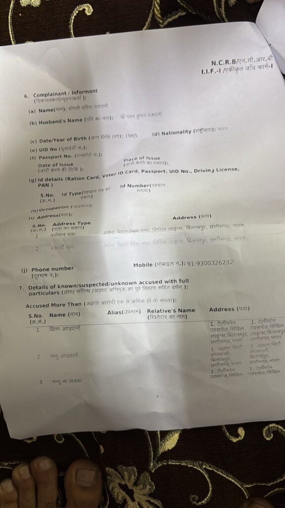 पीड़िता सरिता पंजवानी ने प्रशासन से निष्पक्ष जांच और सख्त कार्रवाई की मांग की है।