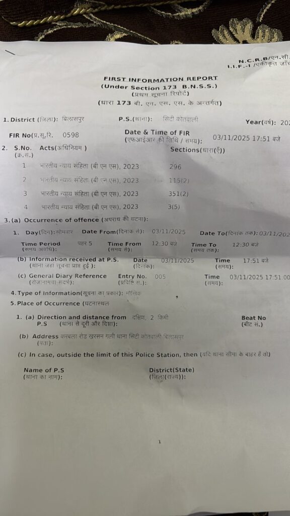 सिटी कोतवाली पुलिस ने आरोपियों पर BNS की धाराएँ 296, 115(2), 351(2), 3(5) के तहत मामला दर्ज किया है।
