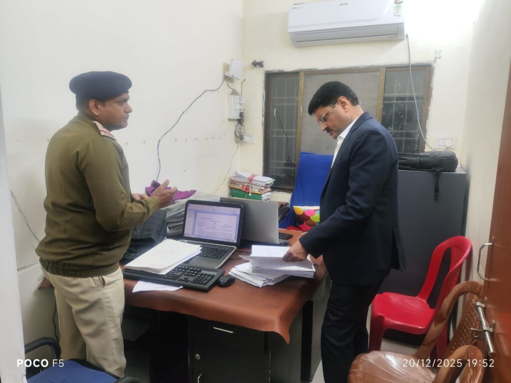 बिलासपुर आज दिनांक 20.12.2025 को वरिष्ठ पुलिस अधीक्षक रजनेश सिंह (भा.पु.से.) द्वारा थाना सरकण्डा का आकस्मिक निरीक्षण किया गया।