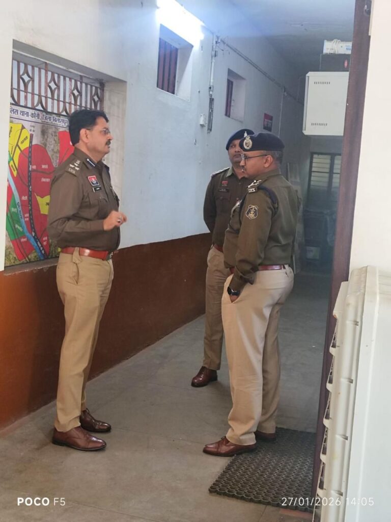 बिलासपुर से पुलिस प्रशासन से जुड़ी बड़ी खबर सामने आई है। पुलिस महानिरीक्षक रामगोपाल गर्ग ने जिले के सरकंडा और कोनी थाना सहित वरिष्ठ पुलिस अधीक्षक कार्यालय का औचक निरीक्षण किया। इस दौरान वरिष्ठ पुलिस अधीक्षक रजनीश सिंह भी उनके साथ मौजूद रहे।