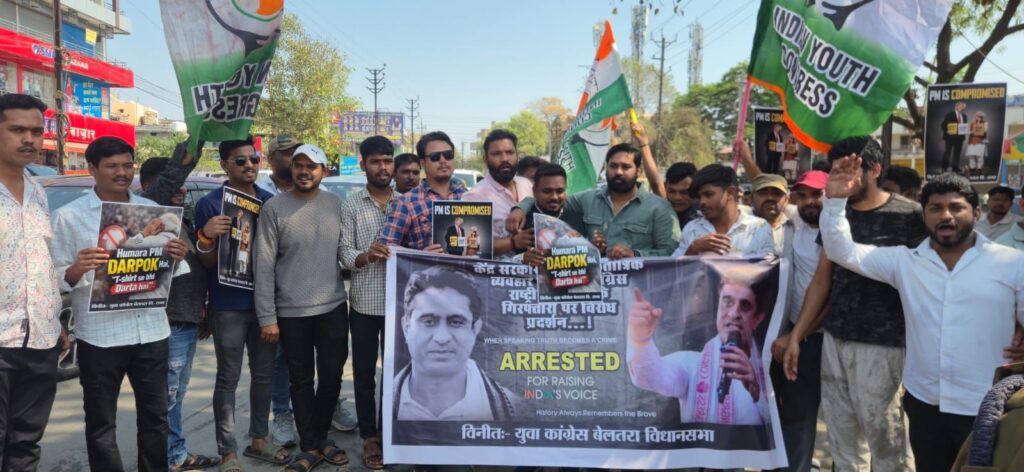 इन सबके अलावा प्रधानमंत्री का नाम एपिस्टीन फाइल में आने से,अमेरिका के सामने नातमस्तक होने से देश की छवि खराब होती है,जिससे आपके देश के किसानों का और देश के अन्य सेक्टरों में जो नुकशान होगा इसकी चिंता न करके अपने मित्र के फायदे के लिए जो डील हुई, देश की छवि इन से खराब होती है न की जानता के बीच इस सत्य को लाने के  उद्देश्य से किए गए लोकतांत्रिक विरोध से खराब होती है! केंद्र सरकार अपनी नाकामियों को दबाने के लिए देश के मुख्य विपक्षी पार्टी के एक युवा संघटन के द्वारा सत्य का आईना दिखाने पर आप चिड़ गए और युवा कॉंग्रेस की आवाज दबाने के लिए हमारे राष्ट्रीय अध्यक्ष को गिरफ्तार कर लिया जो पूर्ण रूप से गैरकानूनी है…. आप ऐसा कर के हम काँग्रेस को न ही दबा सकते हैं और न डरा सकते हैं। आपके इस कायराना हरकतों को अब देश की जनता समझ चुकी है। केंद्र सरकार को हमारे राष्ट्रीय अध्यक्ष को रिहा करना ही होगा।