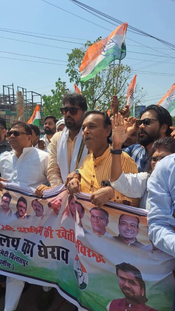 बिलासपुर। बिलासपुर शहर में अफीम की खेती के विरोध में कांग्रेस कार्यकर्ताओं ने भाजपा सरकार के खिलाफ जोरदार प्रदर्शन करते हुए भाजपा कार्यालय का घेराव किया। इस दौरान बड़ी संख्या में कांग्रेस के नेता, पदाधिकारी और कार्यकर्ता सड़कों पर उतर आए और सरकार के खिलाफ जमकर नारेबाजी की।