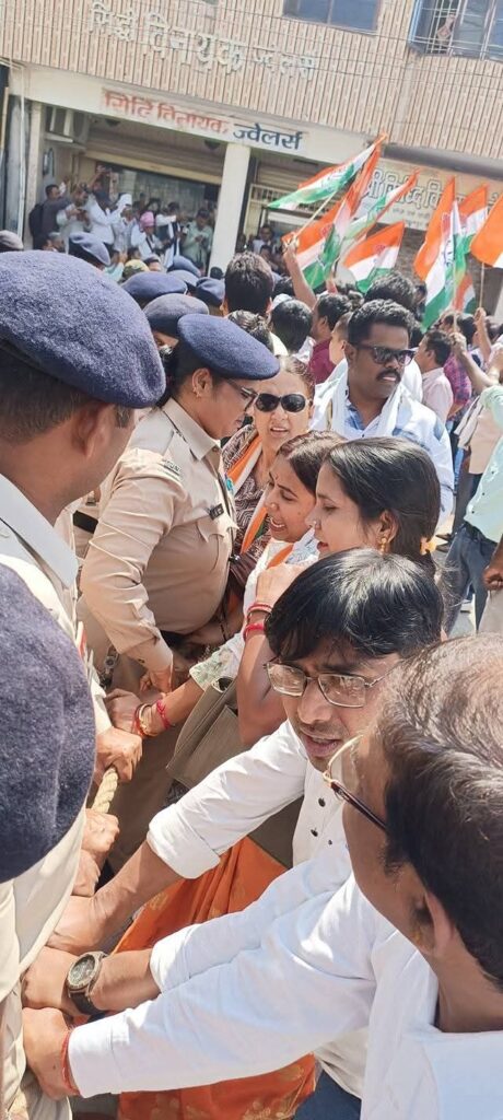 बिलासपुर में कांग्रेस का हल्ला बोल प्रदर्शन, भाजपा कार्यालय घेराव को लेकर.. पुलिस से हुई धक्का-मुक्की..