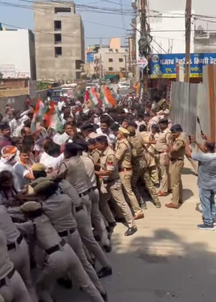 घेराव के दौरान माहौल उस समय गरमा गया जब कांग्रेस कार्यकर्ताओं और पुलिस के बीच हल्की झूमाझटकी की स्थिति बन गई। हालांकि पुलिस ने समय रहते स्थिति को संभाल लिया और प्रदर्शनकारियों को नियंत्रित करते हुए हालात को शांत कराया।