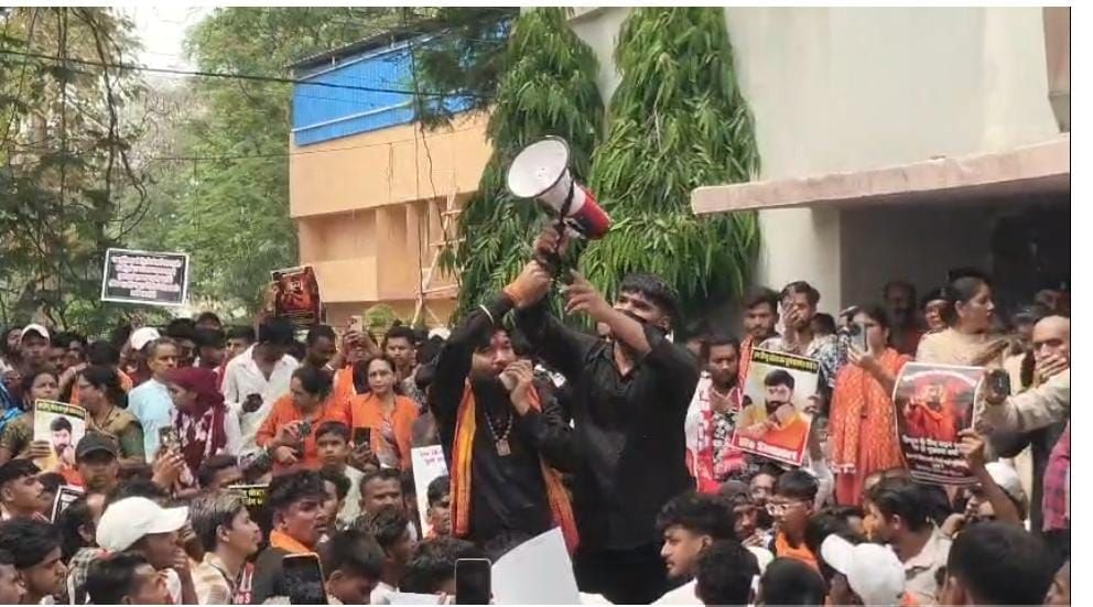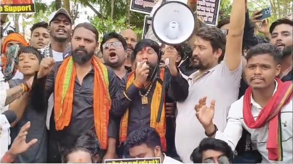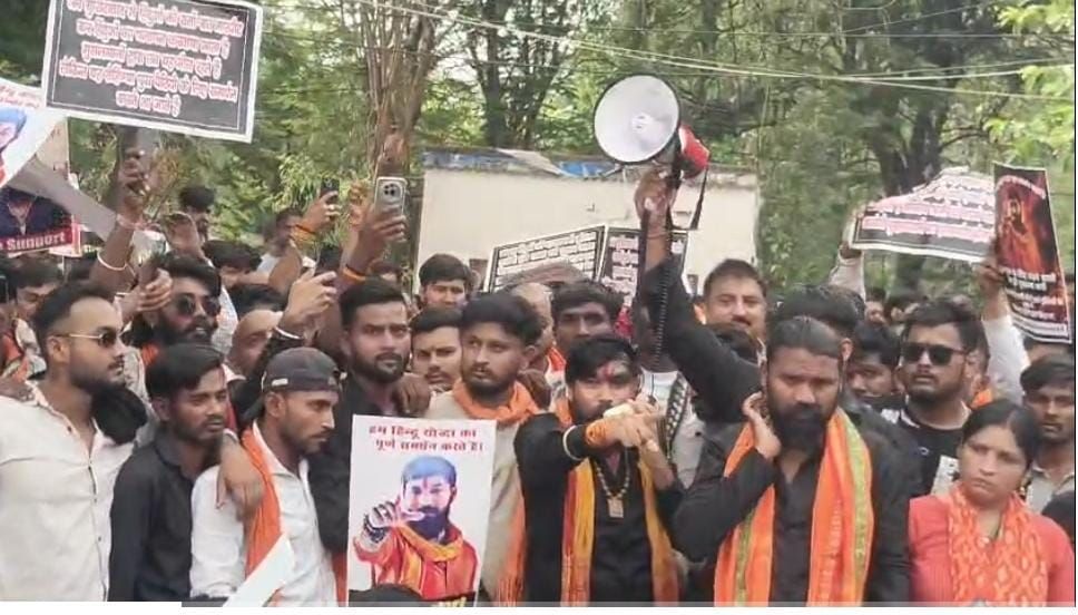 बुधवार को हिंदू संगठन के नेता ठाकुर राम सिंह के समर्थन में सैकड़ों कार्यकर्ता सरकंडा थाने पहुंचे और पुलिस प्रशासन के खिलाफ जमकर नारेबाजी की।