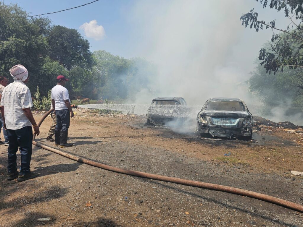कचरे  की ढेर में लगाई आग , आग की चपेट में आने से दो कार जलकर खाक.. क्षेत्र में मचा हड़कंप…