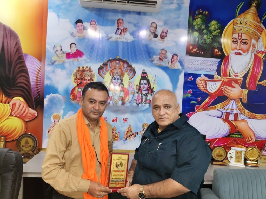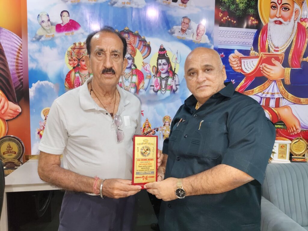बिलासपुर: समाजसेवी कैलाश मलघानी को स्मृति चिन्ह देकर सी.जी. क्राइम न्यूज की टीम ने किया सम्मानि